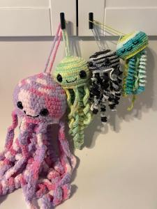 Introducing our adorable crochet jellyfish! Handcrafted with love, each jellyfish is made with cotton, acrylic, baby velvet, chenille, or baby blanket yarn, ensuring a cuddly companion for all ages. With vibrant colors and charming design, these jellyfish will add a touch of whimsy to any nursery or playroom. Perfect for snuggles, imaginative play, or as a unique décor piece, our crochet jellyfish are sure to delight both children and the young at heart. Dive into a world of wonder with our delightful crochet creations today!